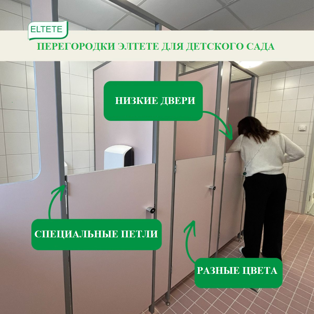 🟢 Широкая цветовая гамма, позволяющая гармонично вписать санузлы в общий дизайн и интерьер дошкольного учреждения (ДОУ).
